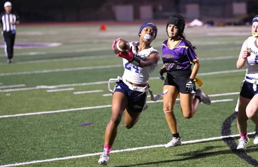 Alaiya Vaughn is a sophomore flag football player from San Diego with a strong passion for the game. She competes as a running back and cornerback, making an impact on both sides of the ball with her athleticism, competitiveness, and playmaking ability.